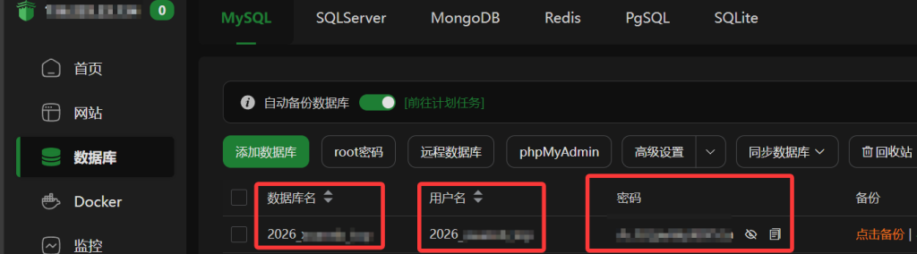 依次填入数据库配置信息,数据库配置信息在图片所示(下图)